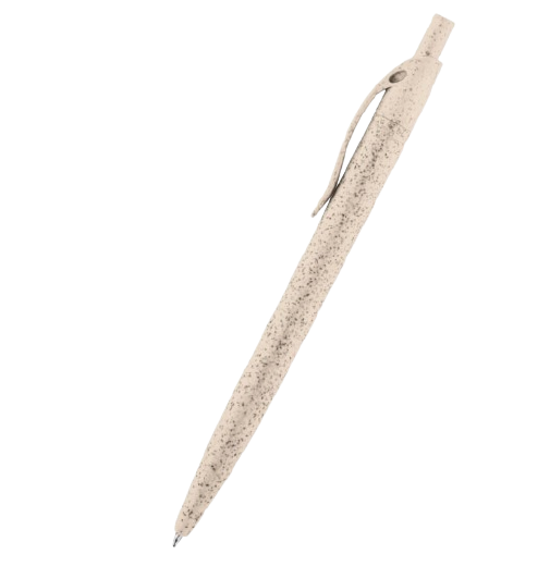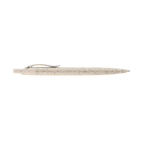 Bolígrafo retráctil ecológico fabricado en fibra de paja de trigo y ABS. Cuerpo color natural. Tinta negra.