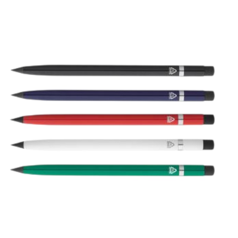 Lápiz de larga duración, con cuerpo de aluminio (100% reciclado) y capuchón de PE (100% reciclado). Apto para uso prolongado sin necesidad de sacarle punta.