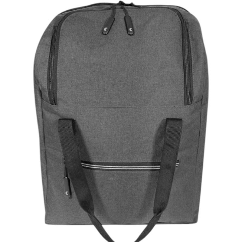 Bolso matero con dos grandes compartimentos. Compartimento principal desplegable que cuenta con divisiones para transportar termo, mate y recipiente para la yerba. Segundo compartimento amplio para múltiples usos. Bolsillo frontal con cierre. Cierres con detalles de goma. La parte trasera cuenta con tiras regulables con hebillas plásticas y en la parte superior dos tiras con cierre a presión que lo convierten en bolso de mano.