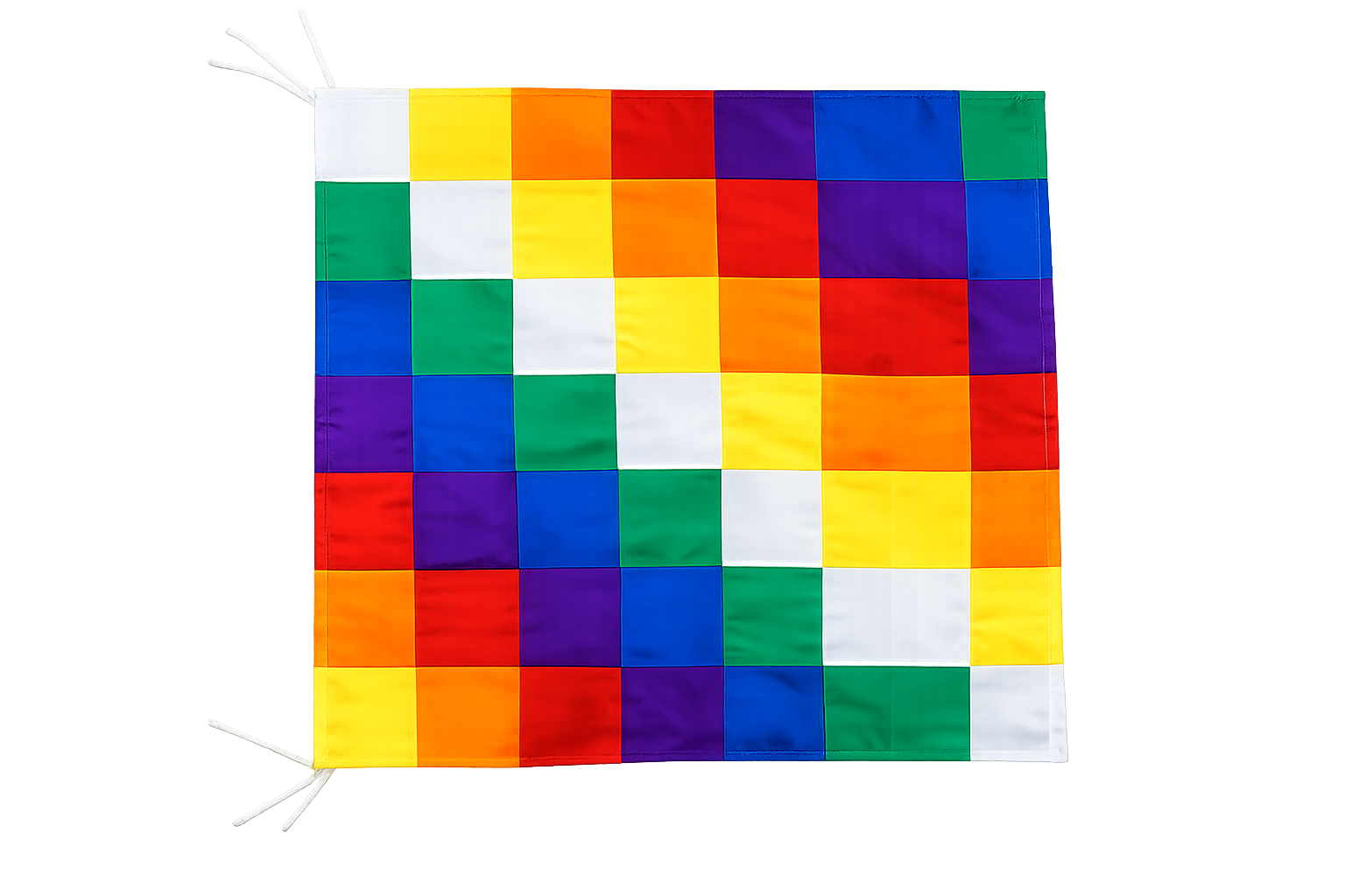 Bandera confeccionada en gros de seda doble paño con cintas para atar. Con moño includio Medida: 0,90 x 0,90 MTS